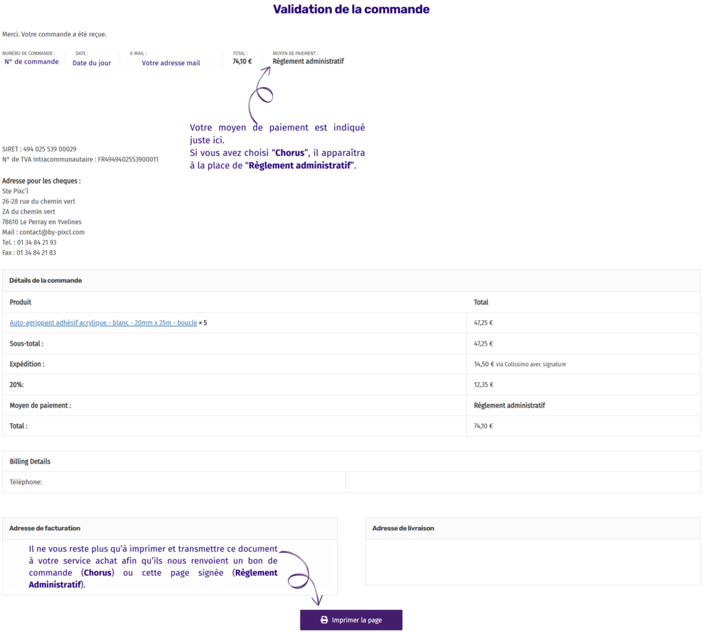 Voici la procédure à suivre si vous êtes une administration et que vous souhaitez commander sur notre site.