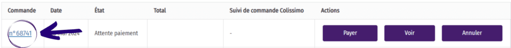 Sur la page, sélectionnez la rubrique « Vos commandes«