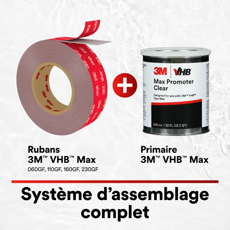 Associés au Primaire 3M™ VHB™ Max, ces rubans forment un système complet d’assemblage haute performance